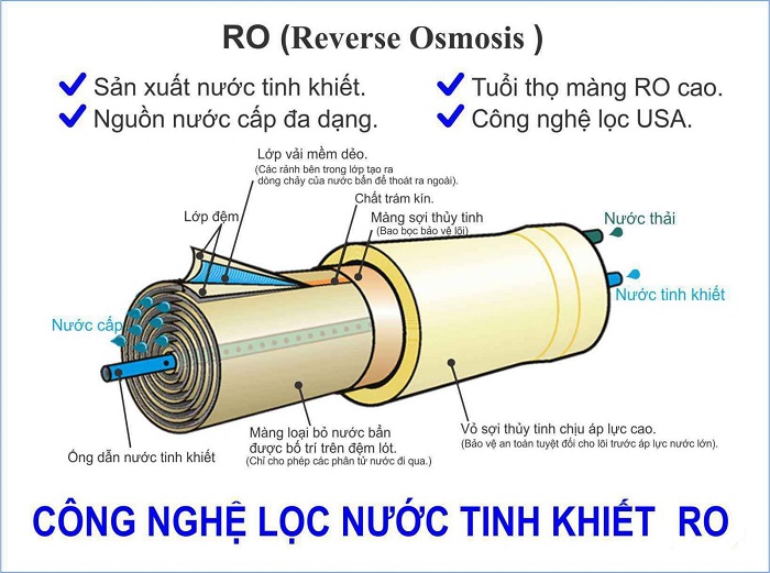 - Bước 3: Lọc màng RO (thẩm thấu ngược)