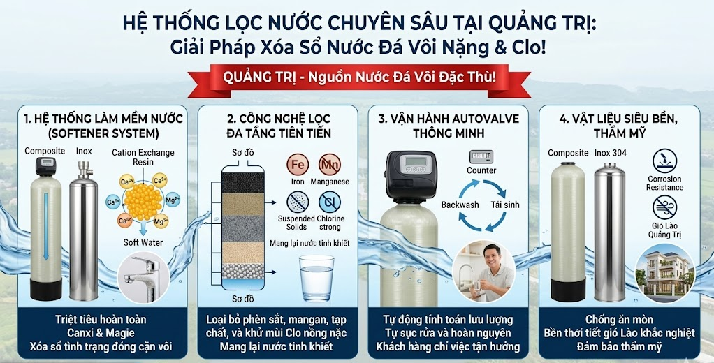 GIẢI PHÁP LỌC TỔNG ĐẦU NGUỒN – ĐẶC TRỊ NƯỚC CỨNG, ĐÁ VÔI TẠI QUẢNG TRỊ