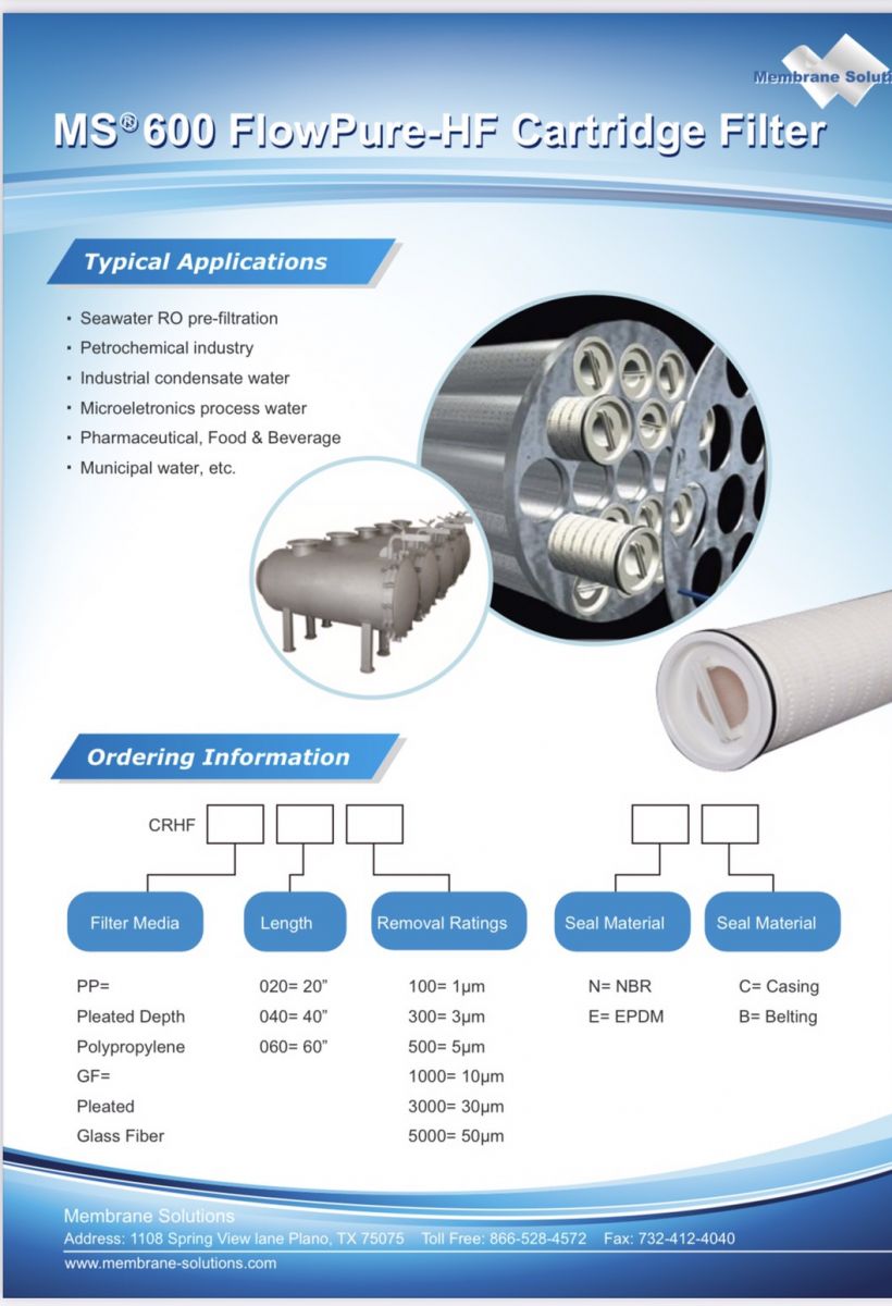 Lõi lọc lưu lượng cao HF cung cấp khả năng tuyệt vời để bảo vệ hệ thống màng RO khử muối nước biển, mỏ dầu hoặc các lĩnh vực công nghiệp khác. Nó có thể được ứng dụng cho một loạt các yêu cầu về tốc độ dòng chảy để hạn chế thay đổi bộ lọc nghĩa là giảm chi phí lao động,chi phí xử lý và hao hụt chất lỏng.