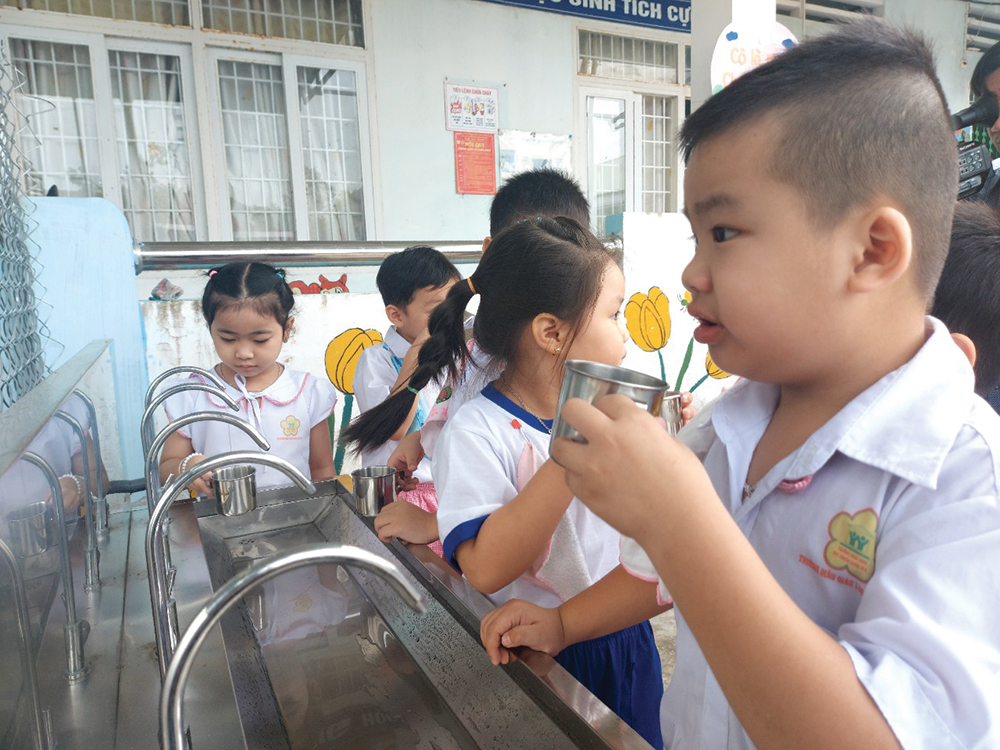 • Máy lọc nước nóng lạnh công suất lớn: Phục vụ nhu cầu uống nước ấm mùa đông và nước mát mùa hè tại các trường bán trú.